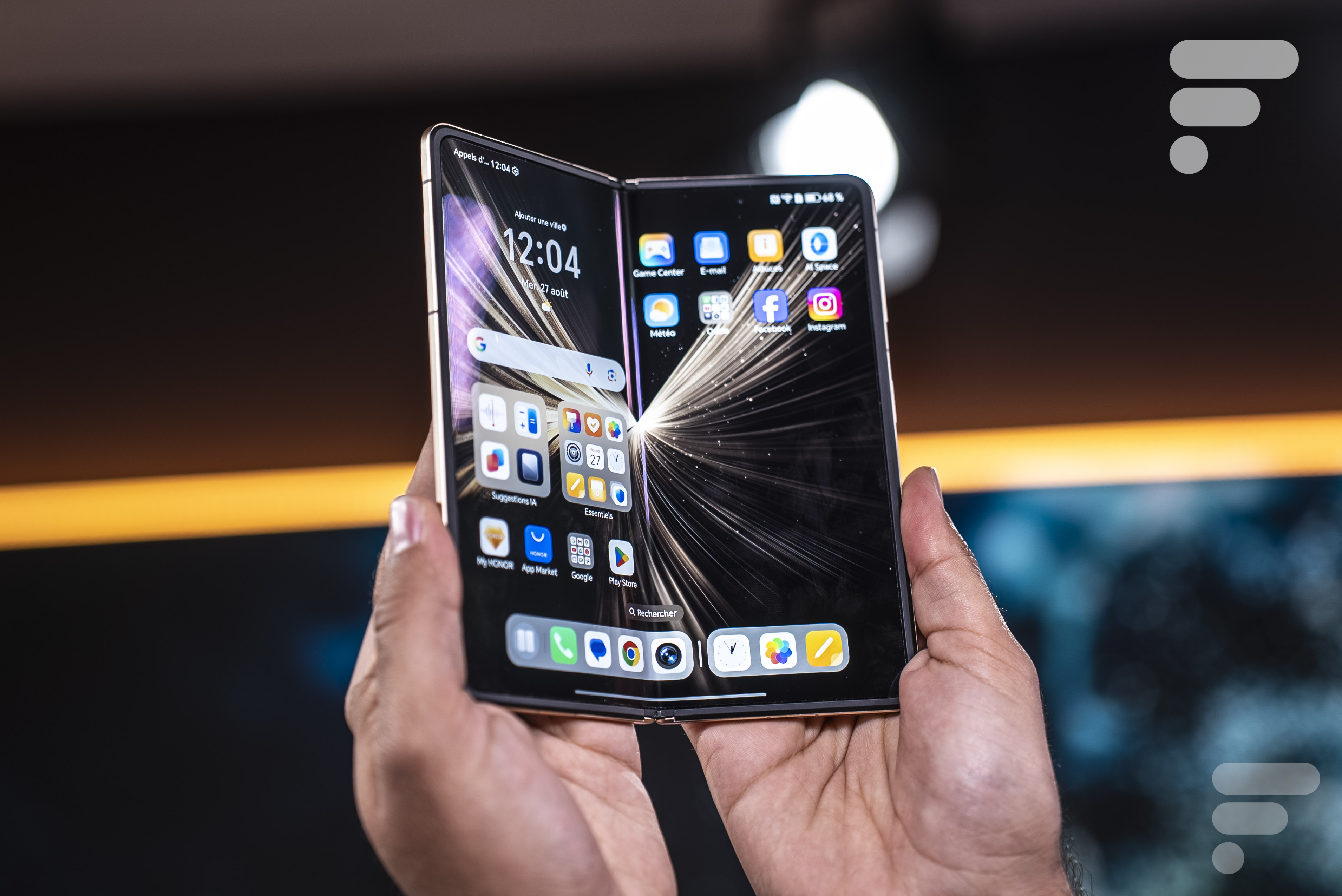 Le Honor Magic V5, récemment testé et noté 8/10 par Frandroid, s’impose comme le smartphone pliable le plus fin du monde : 4,1 mm ouvert et 8,8 mm une fois replié pour sa version blanc ivoire. Pour les versions noire et dorée, c’est à peine plus (4,2 mm et 9 mm). Il fait ainsi mieux que certains modèles non pliables, tout en intégrant un double écran.