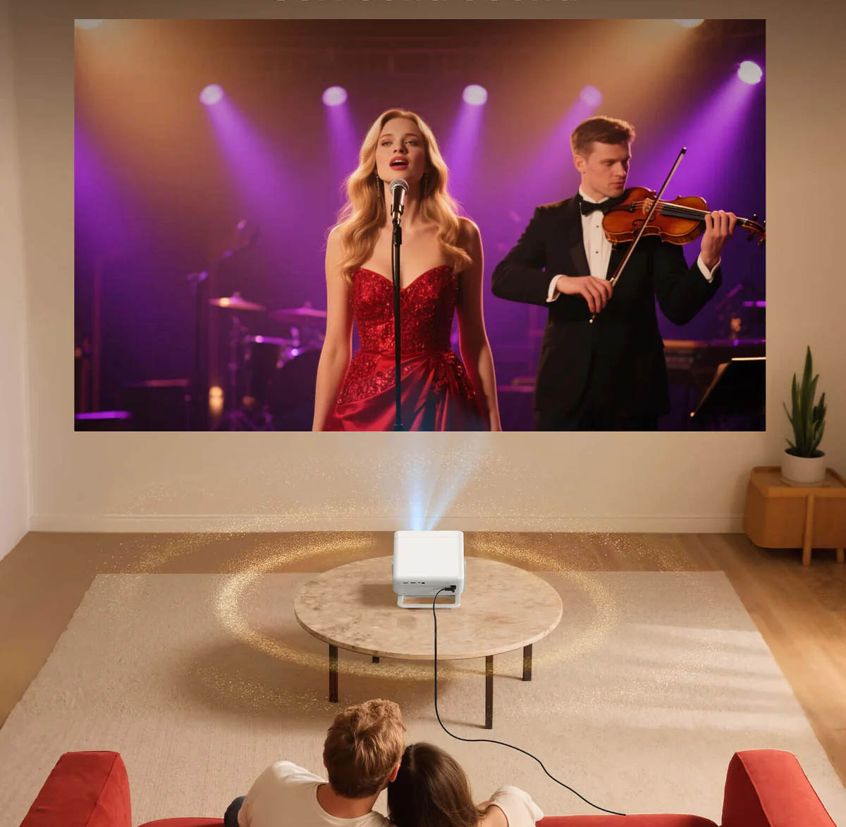 Le rendu audio est trop brouillon pour être satisfaisant. Les scènes d’action ne bénéficient ni d’une dynamique marquée ni d’une chaleur enveloppante, ce qui impose rapidement d’avoir recours à une barre de son, une enceinte Bluetooth ou un casque filaire, d’autant que le projecteur dispose des connectiques nécessaires pour ces équipements.