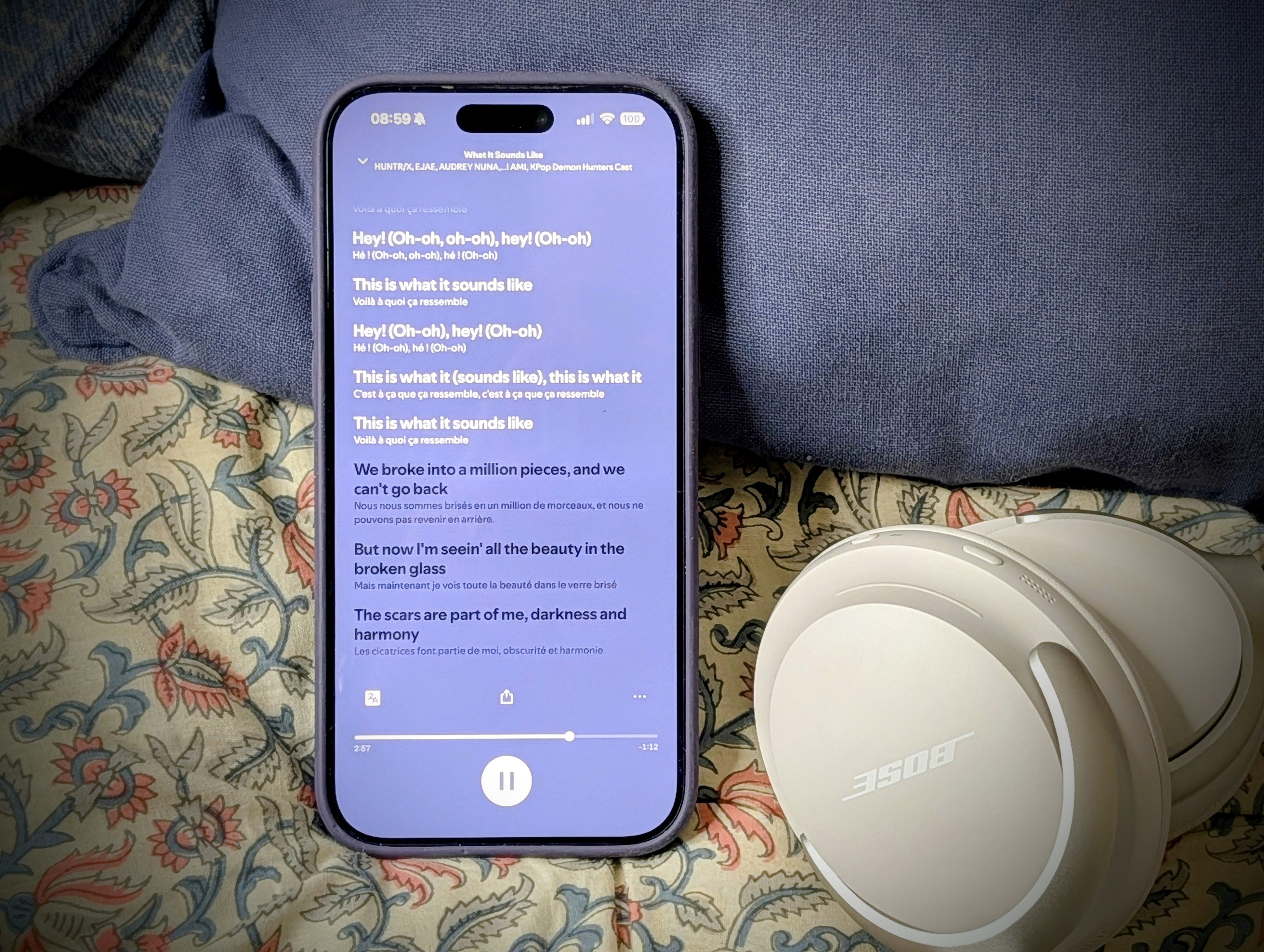 Toutes les chansons ne sont pas encore éligibles, la disponibilité de la traduction dépendant de la base de données fournie par Musixmatch. Pour les titres compatibles, le texte traduit s’affiche de manière synchronisée avec la musique, permettant de comprendre le morceau en temps réel.