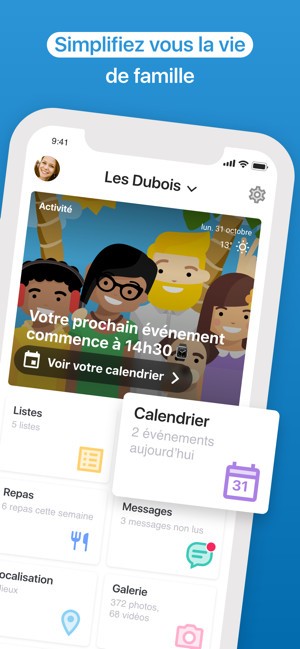 L’appli est un véritable outil de gestion du temps pour permettre à chacun d’y trouver son compte et de partager les activités. Elle dispose d’un calendrier familial, permet de partager les listes de courses et même de planifier les menus de la semaine. Vous pouvez même localiser les enfants depuis l’appli ou partager des photos/vidéos.