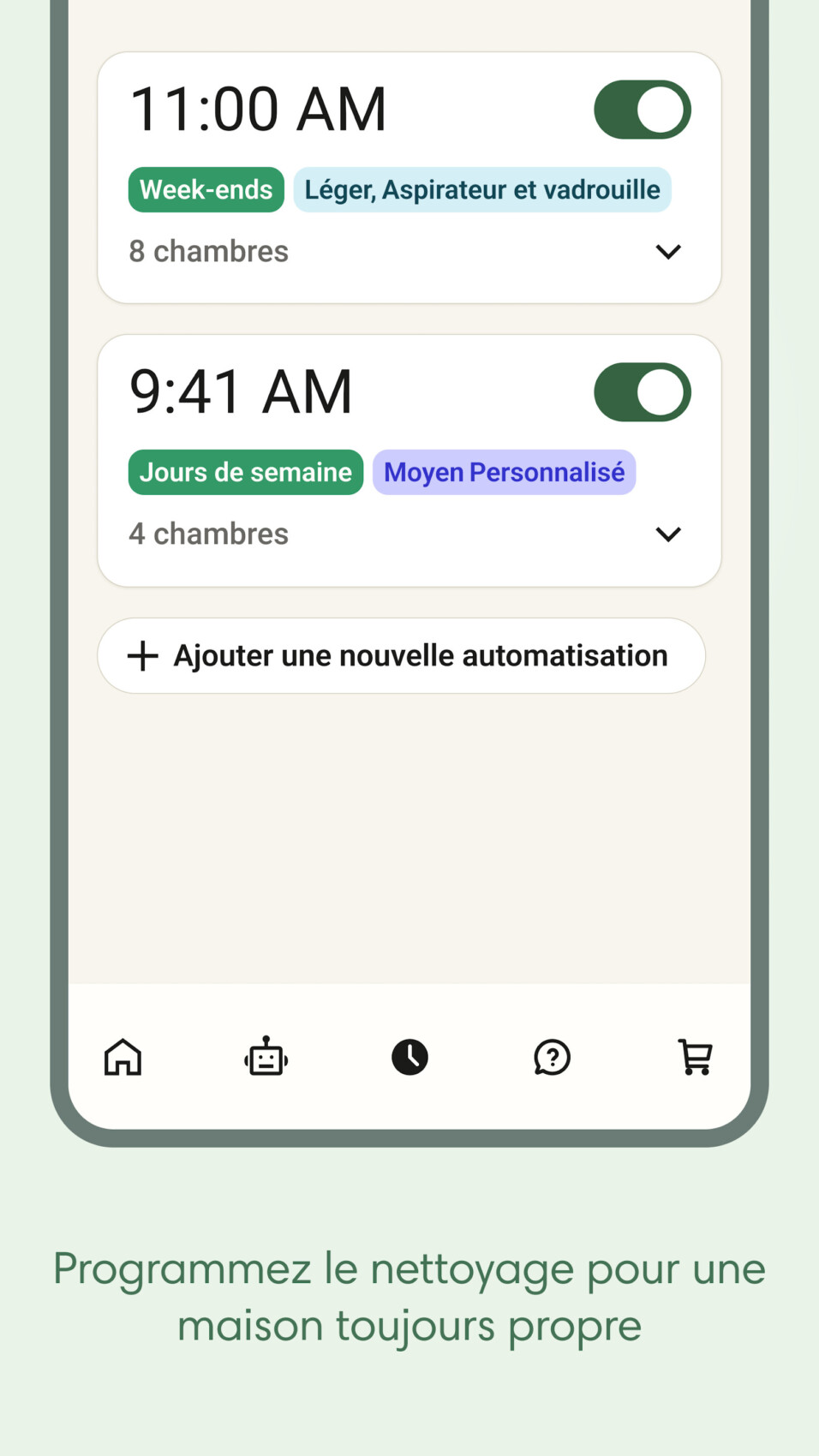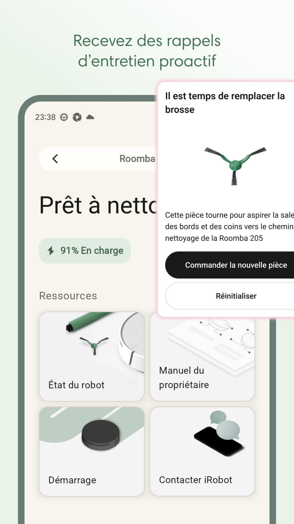 Avec iRobot Home, votre smartphone devient le cerveau de votre robot. Vous pouvez démarrer, mettre en pause ou arrêter un cycle de nettoyage où que vous soyez. L’application offre des réglages fins pour chaque passage : ajustez la puissance d’aspiration, le débit de liquide pour le lavage, ou demandez un ou deux passages pour un nettoyage en profondeur. Compatible avec les assistants vocaux comme Google Assistant, Alexa et Siri, une simple commande vocale suffit pour lancer votre robot sans même toucher à votre téléphone. Enfin, l’application assure une maintenance proactive de votre appareil en vous notifiant lorsqu’il est temps de vider le bac, de nettoyer les brosses ou de remplacer un filtre, garantissant ainsi des performances optimales sur le long terme.