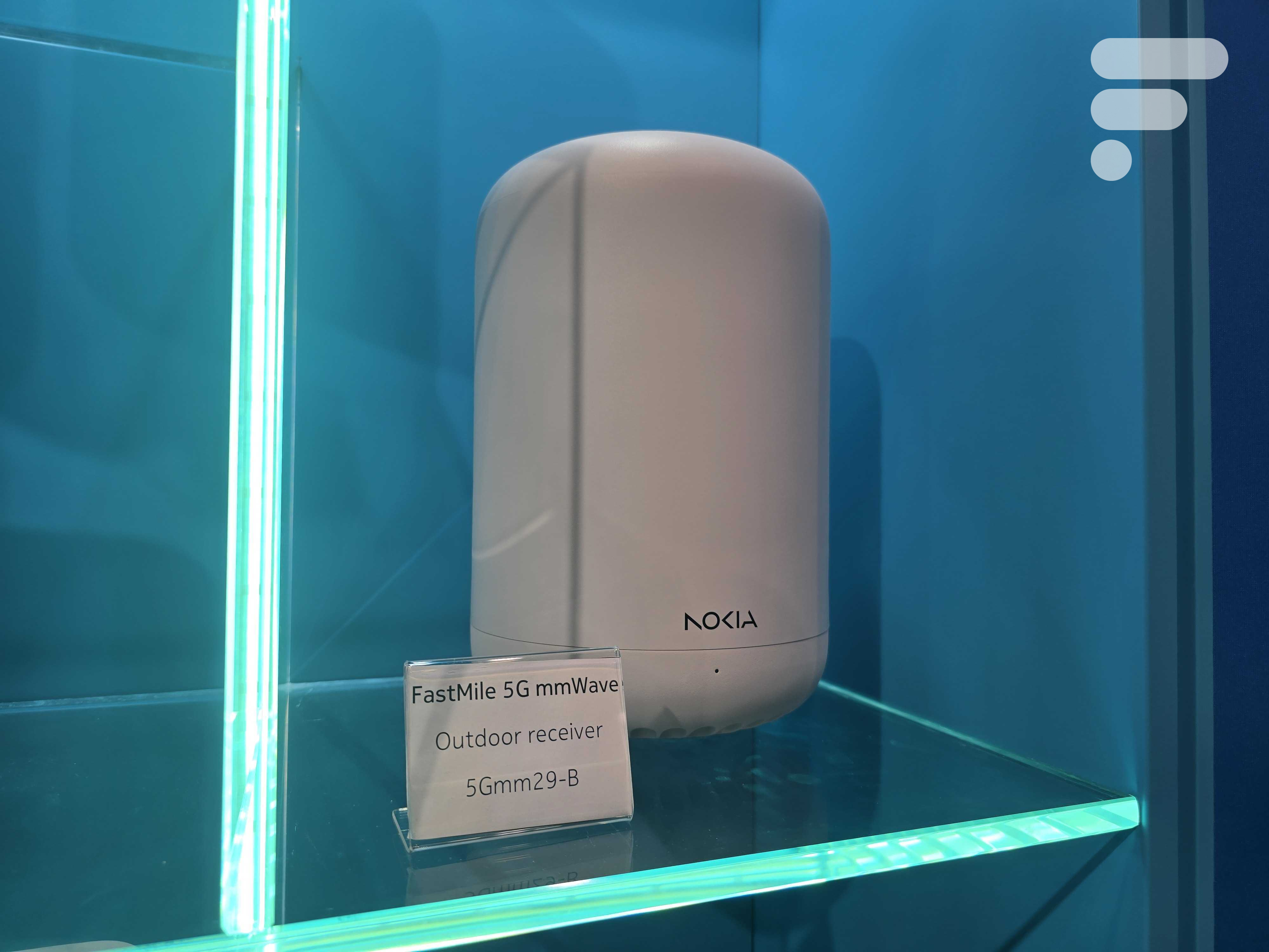 Ce boîtier, baptisé Nokia 5Gmm29-b, est donc une antenne 5G mmWave, ou « récepteur extérieur » pour reprendre les éléments de langage de la marque. Au vu de ses caractéristiques, on ne la trouve nulle part en Europe. Un représentant de Nokia nous explique toutefois que ce dispositif est déjà commercialisé ailleurs comme en Australie auprès des opérateurs et même de particuliers. « En Australie, ce dispositif est privilégié dans les régions reculées, là où la fibre n’est pas encore déployée« .