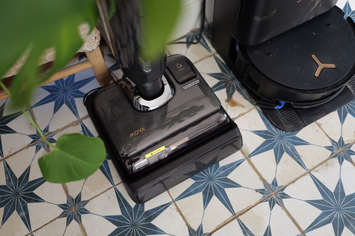 La batterie de 5 cellules de 4 000 mAh promet 40 minutes d’autonomie en mode intelligent, suffisant selon Mova pour couvrir environ 300 m². Le réservoir d’eau sale de 700 ml dispose d’un séparateur qui distingue les déchets solides du liquide, facilitant le vidage. Une particularité intéressante : le réservoir de détergent de 100 ml qui dose automatiquement le produit en fonction de la saleté détectée, avec une autonomie annoncée de 60 jours à raison de trois utilisations par semaine.